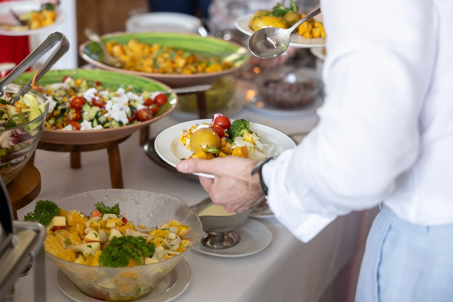 Yritysjuhlat ansaitsevat ruoan, joka jää mieleen. Rauhalassa buffet- ja pöytiintarjoillut menumme rakentuvat sesongin parhaista raaka-aineista, ja lisäksi valikoimassamme on inspiroivia cocktail-, brunssi- ja teemamenuja. Tutustu valmiisiin vaihtoehtoihin ja valitaan yhdessä kokonaisuus, joka kruunaa juhlanne – me huolehdimme, että tarjoilu on yhtä elämyksellistä kuin itse tilaisuus.
